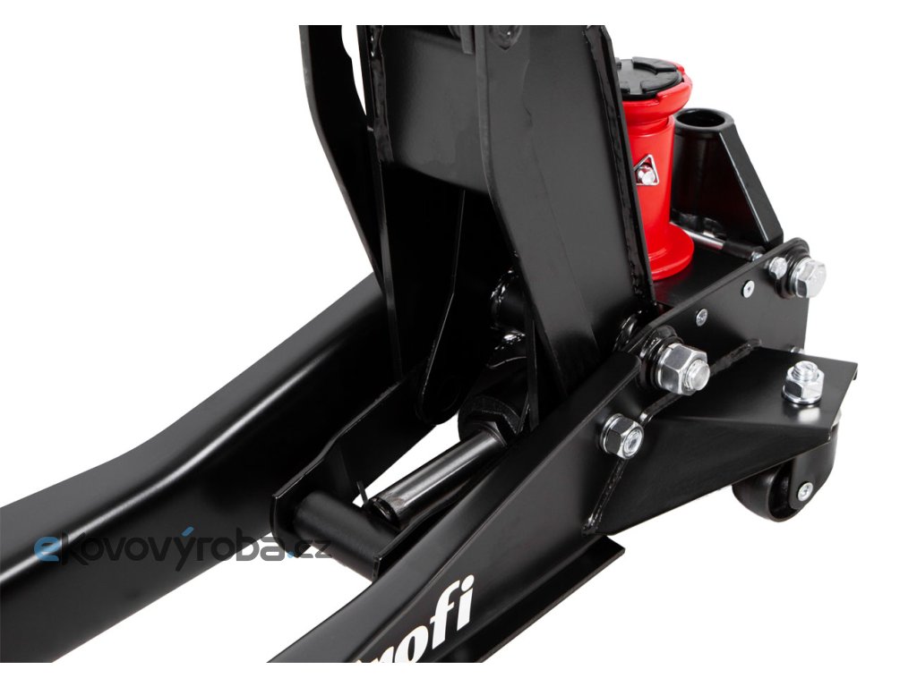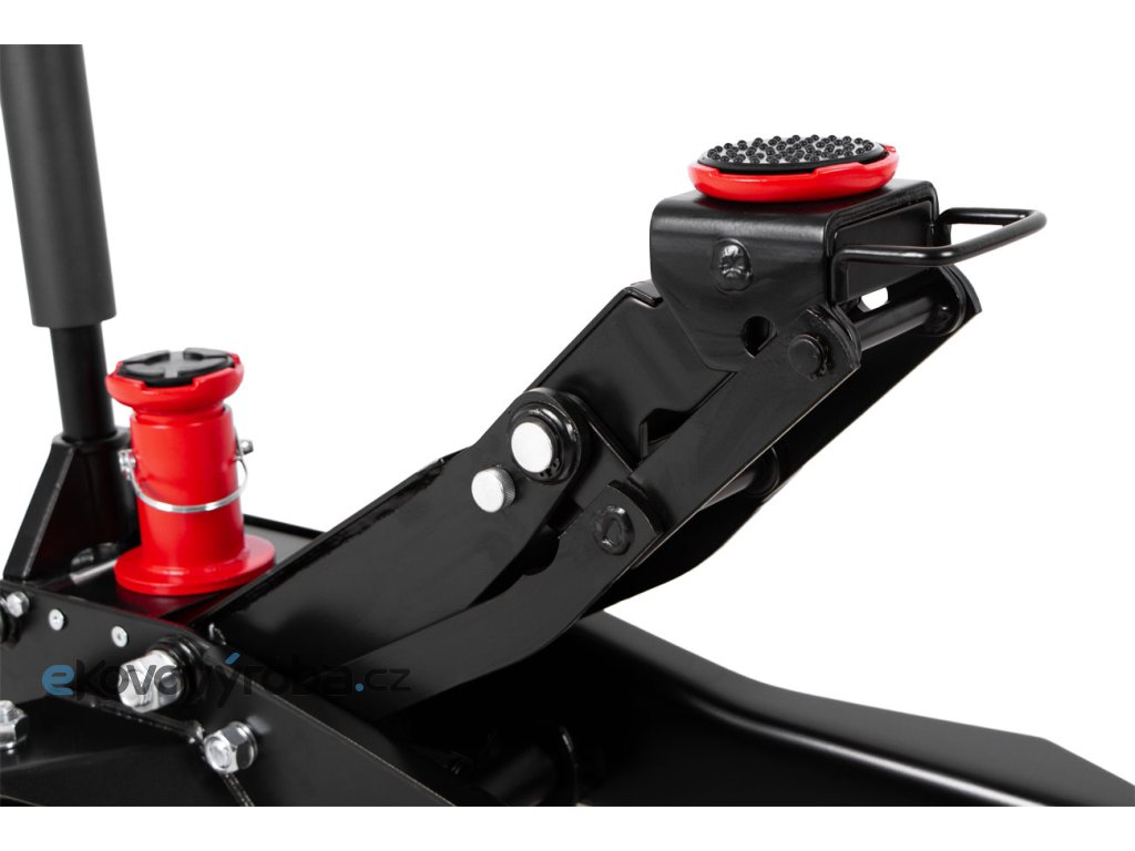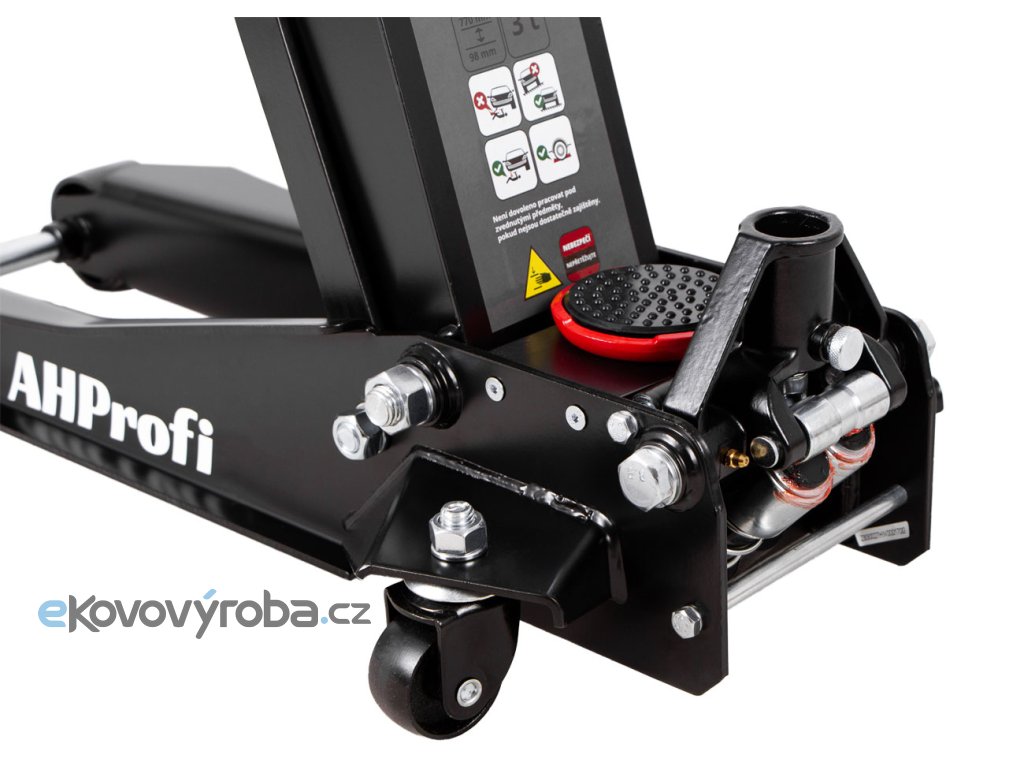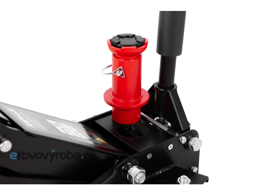 Nízkoprofilový hydraulický zvedák s nosností 3 tuny nabízí stabilitu díky pevné konstrukci, vyrobené ze silného ocelového plechu.