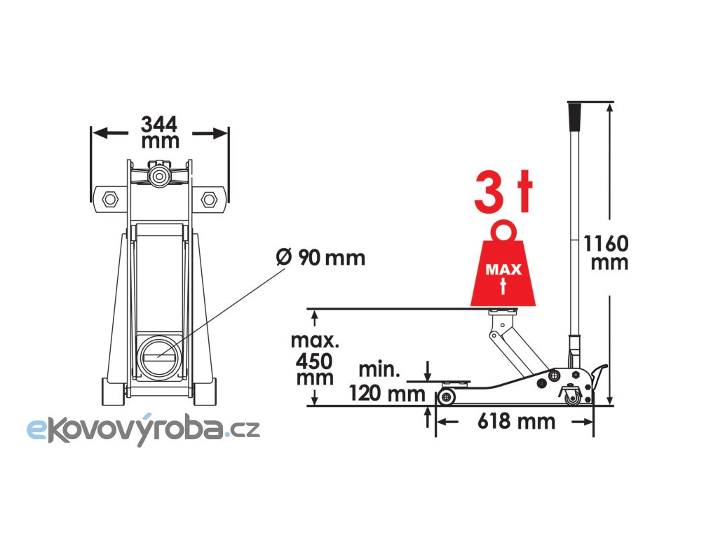 Tento hever má rozsah zdvihu od 120 mm do 450 mm a nosnost 3 tuny.