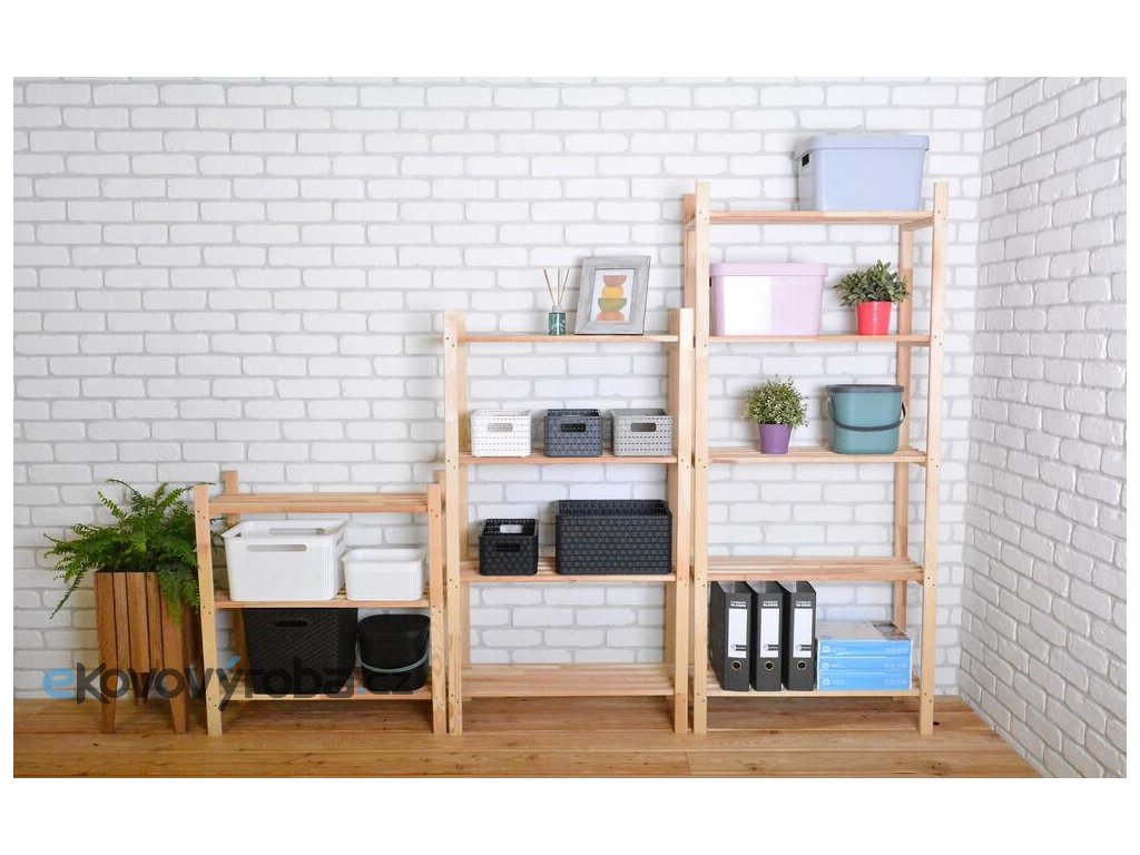 Policový regál v přírodním provedení z borovicového dřeva. Každá ze 3 polic unese až 30 kg. Přírodní provedení umožňuje regál natřít či ošetřit dle potřeby. Ideální pro skladování věcí ve spíži či dílně. Certifikát FSC zaručuje, že použité dřevo pochází ze šetrně obhospodařovaných lesů, ve kterých jsou dodržovány přísné ekologické asociální požadavky.
