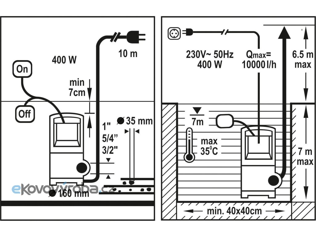 Ponorné čerpadlo pro čistou i kalnou vodu o výkonu 400W.
