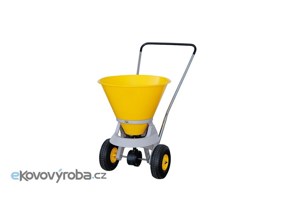 Posypový vozík pro posypový materiál na zimní údržbu pozemních komunikací o objemu 35 l. Nádoba/zásobník vyrobena z plastu (PE) a náprava z nerezové oceli. Vhodné pro velké plochy. Zásobník na 35 l materiálu. Vybaveno dušovými kolečky – průměr 260 mm. Plynulé rozmetání s volbou intenzity posypu – až 6 kroků. Šíře posypu – 1 – 4 m (dle rychlosti pojezdu).