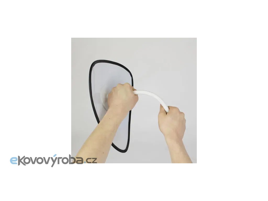 Zrcadlo dodáváme včetně univerzálního teleskopického držáku na zeď. Flexibilní tyč umožňuje snadné nastavení požadovaného úhlu odrazu. |