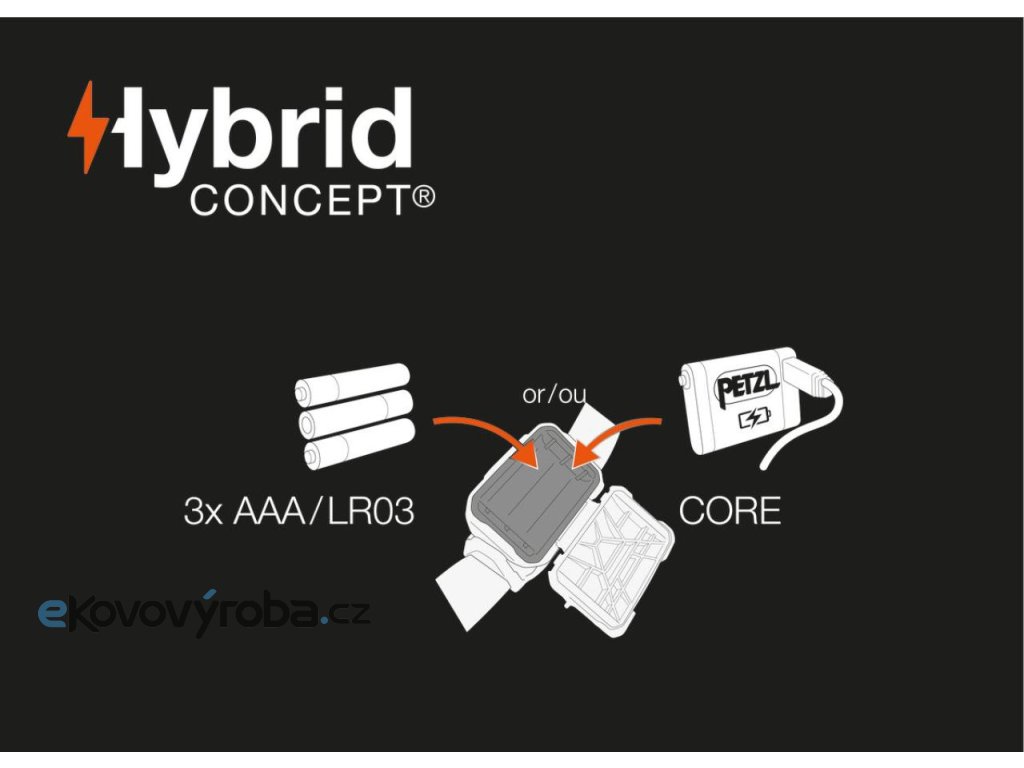 Technologie HYBRID CONCEPT umožňuje použití běžných baterií i dobíjecího akumulátoru CORE.