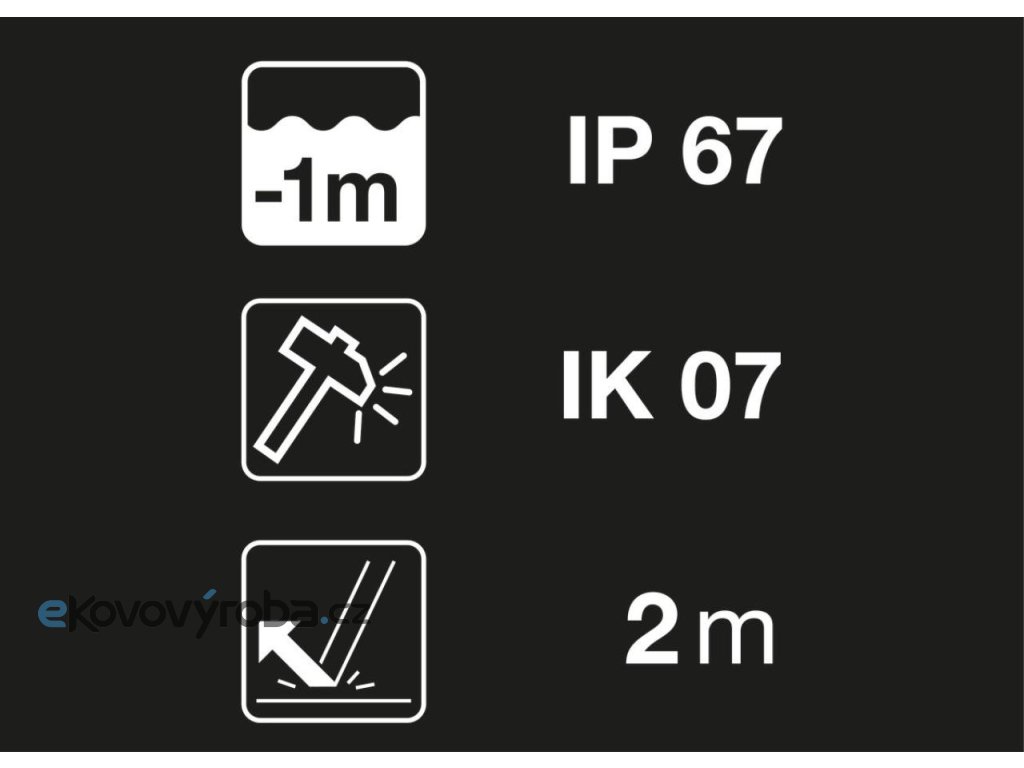 - Odolná vůči pádu (z výšky až 2 m), nárazu (IK07), vodě a prachu (IP67)