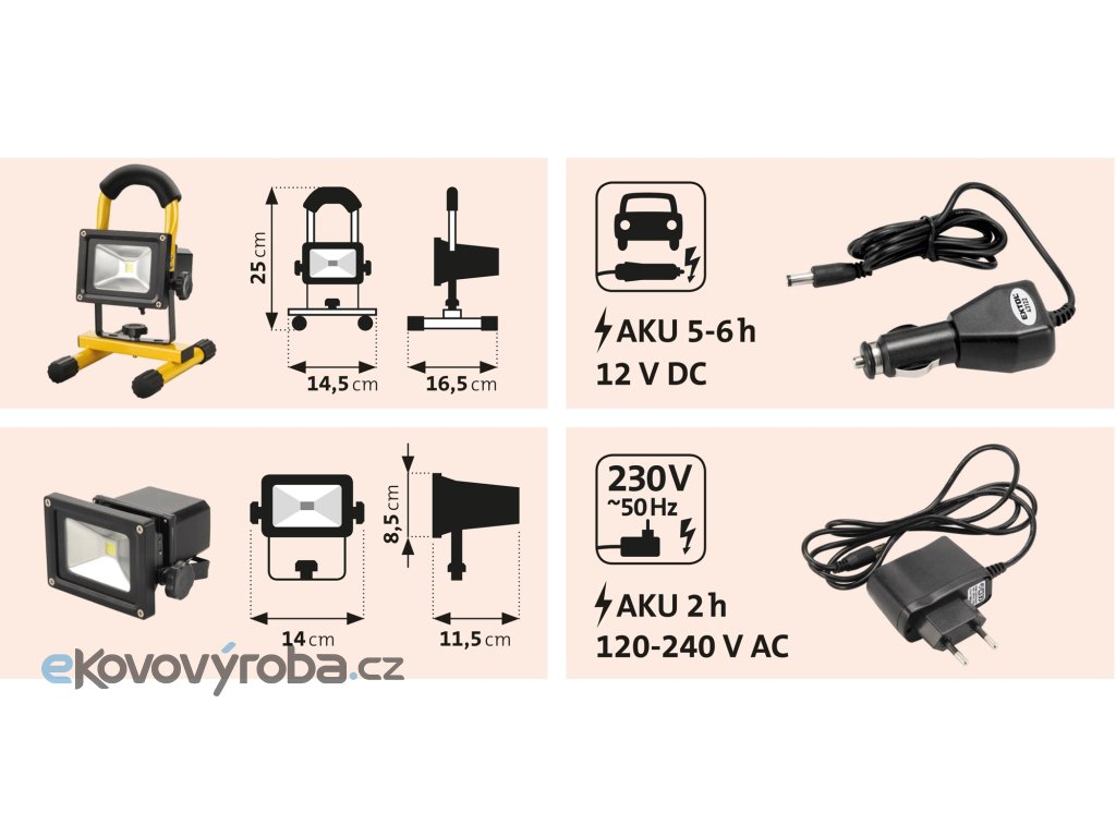 - rychlá nabíječka na 230V nabije reflektor za 2 hodiny