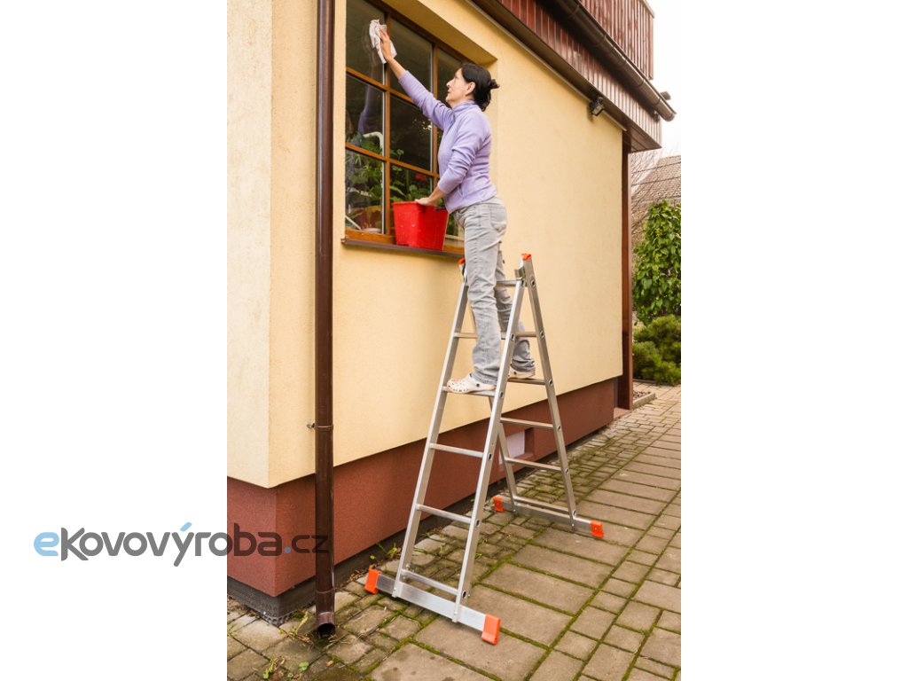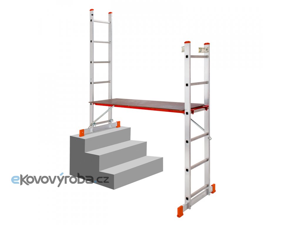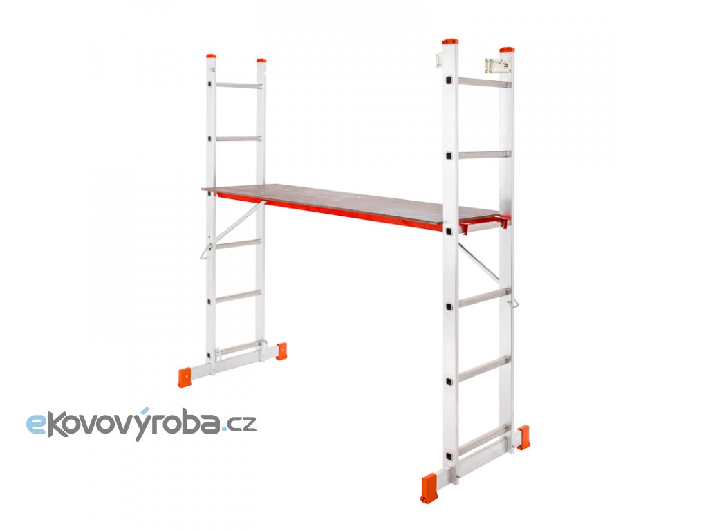 Multifunkční pracovní plošina je vyrobena z kvalitního odlehčeného hliníku. Díky lisovanému spojení příček s bočnicemi je zajištěná vysoká tuhost a životnost.