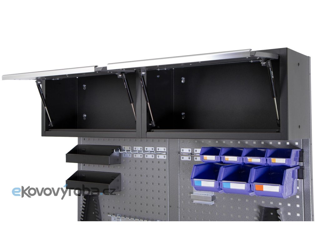 Mobilní pracovní stůl s děrovanou deskou a horními skříňkami - AH1371A