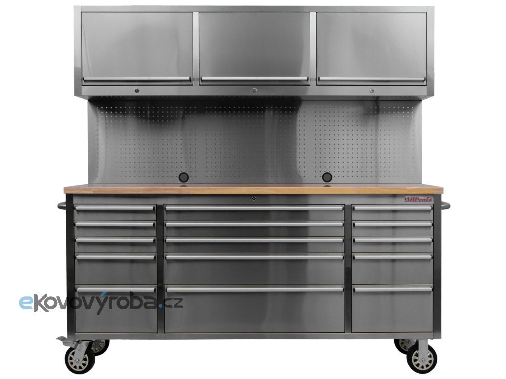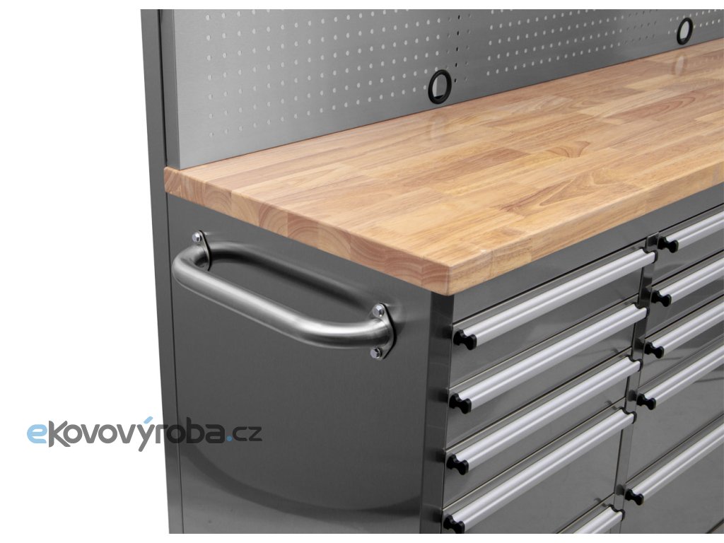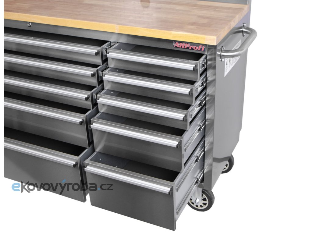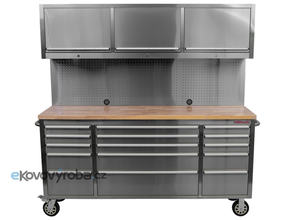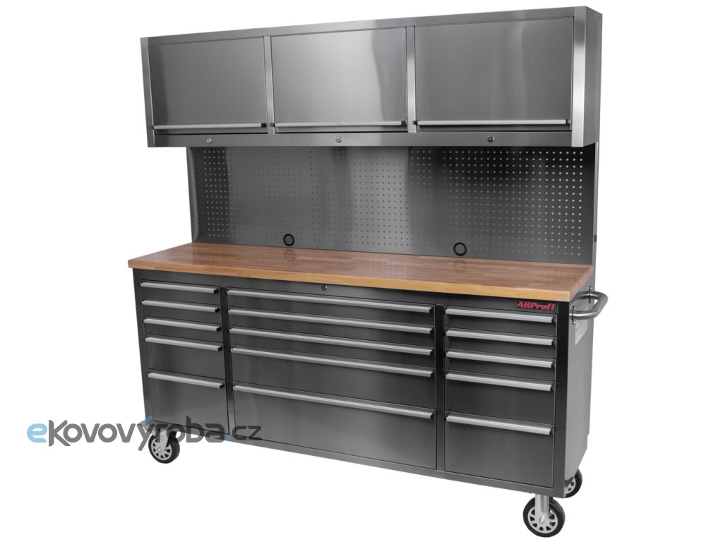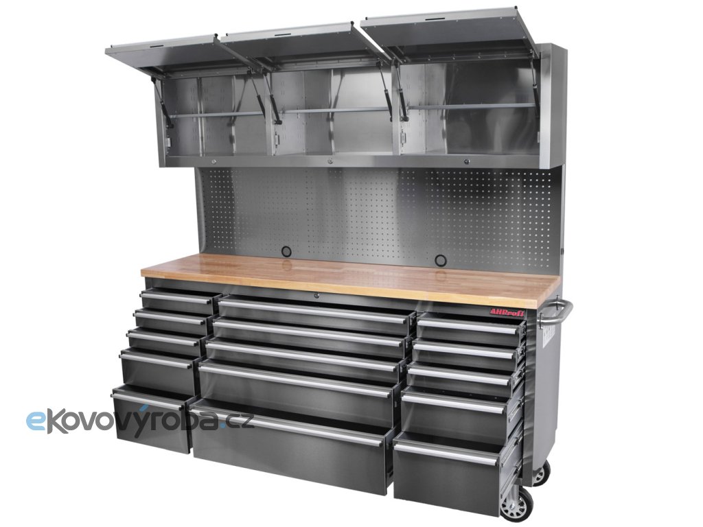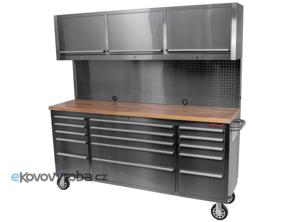 Dílenský vozík s dřevěnou pracovní deskou a horními skříňkami, 15 zásuvek - AHProfi