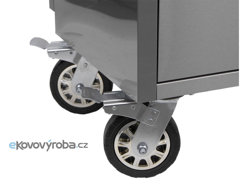 Kolečka: 4 ks (2 otočná s brzdou, 2 pevná), průměr 15 cm