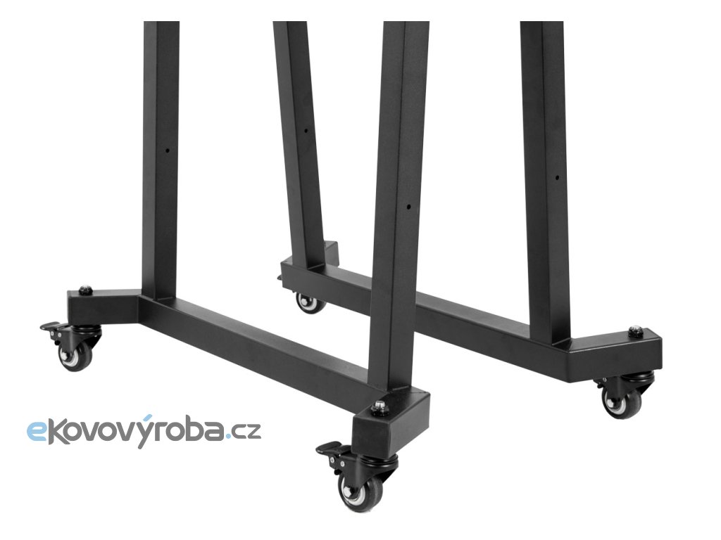 Vybaven 4 kolečky s brzdou pro zajištění stability při práci a snadnou manipulaci při přepravě či uskladnění.