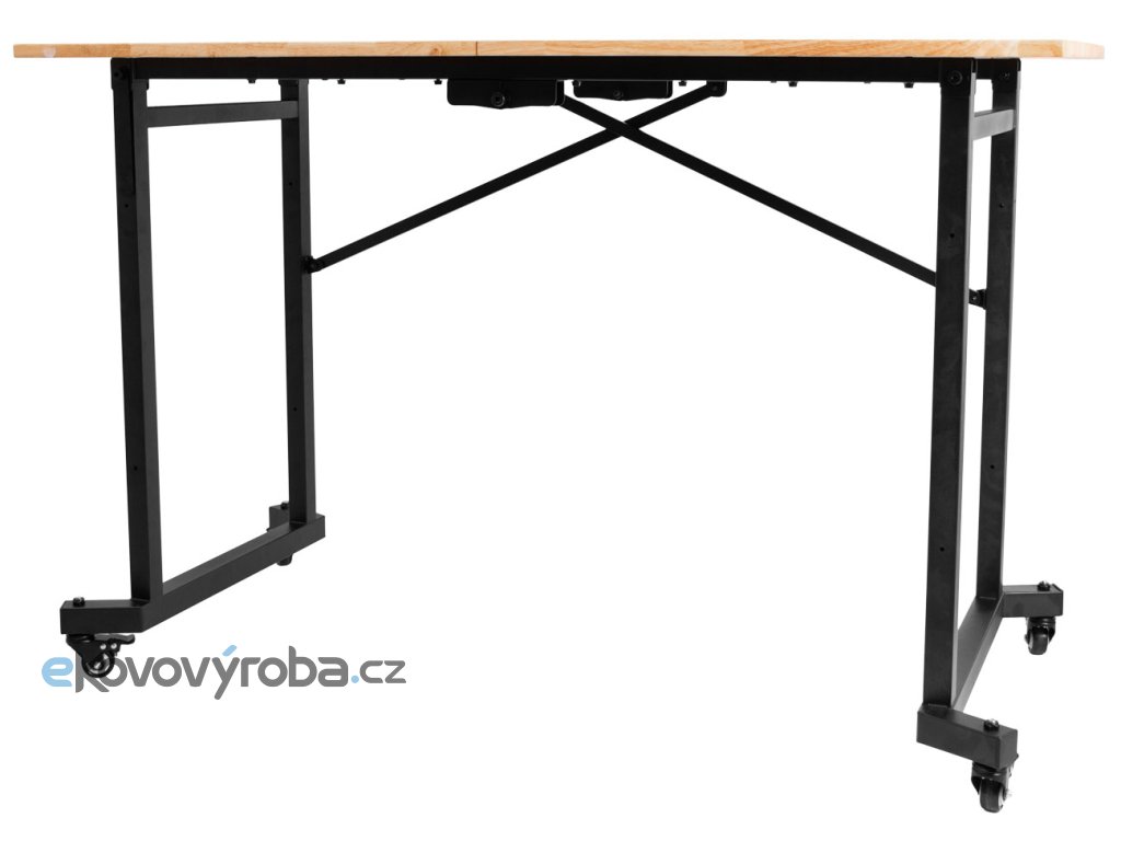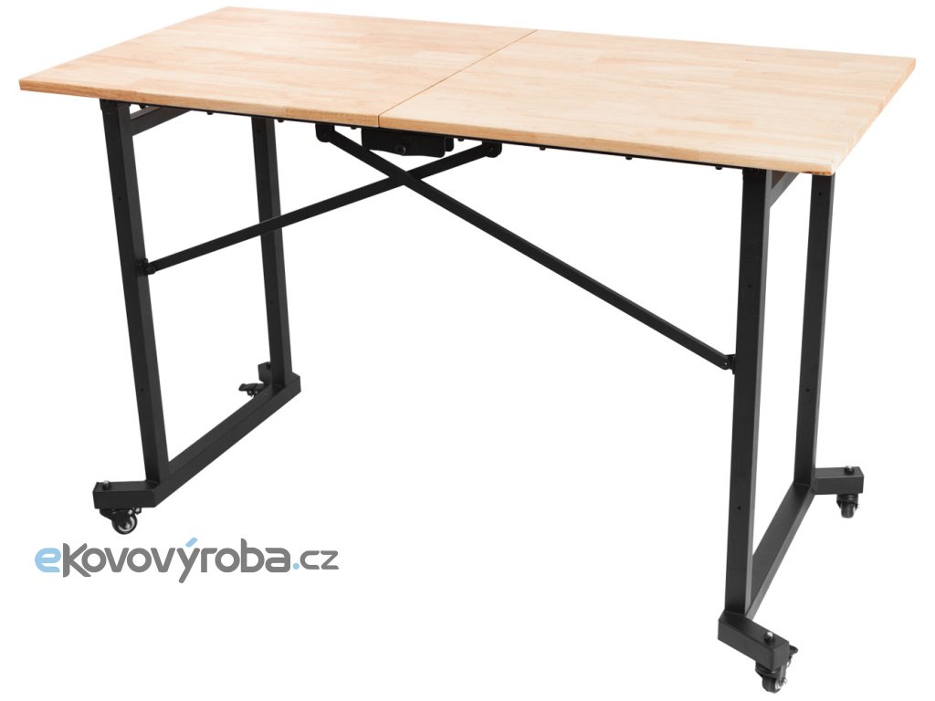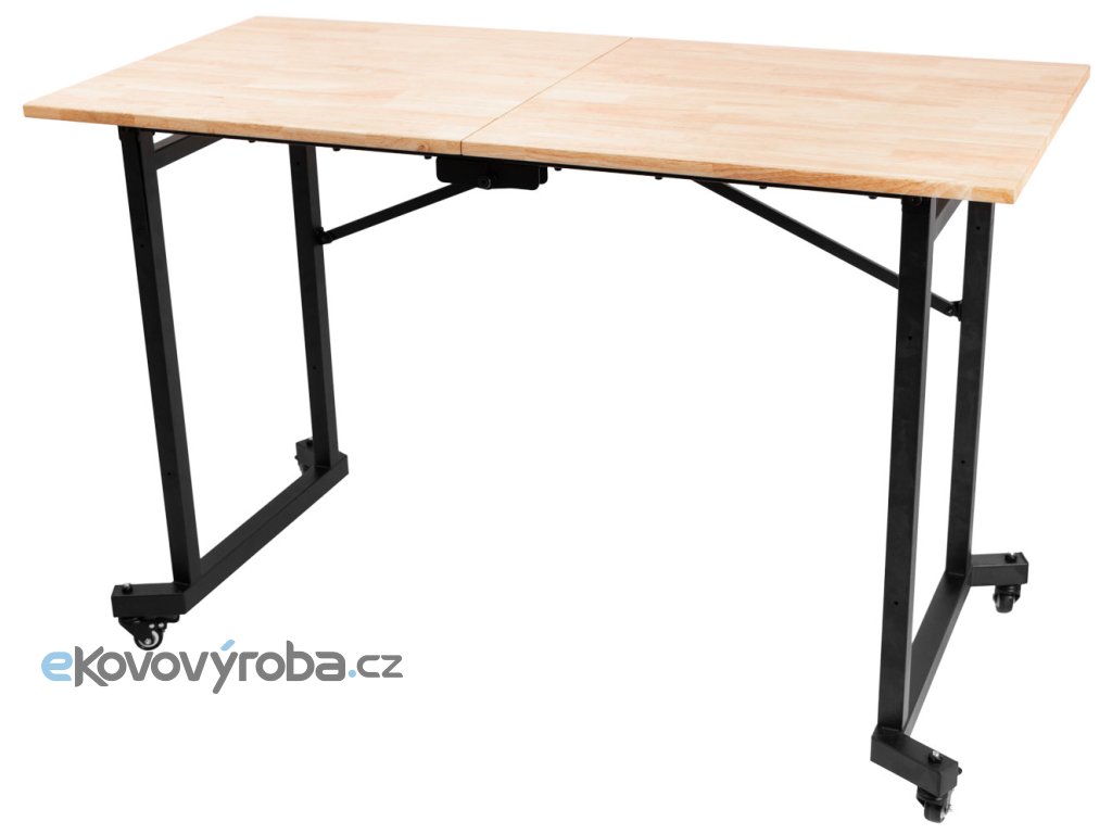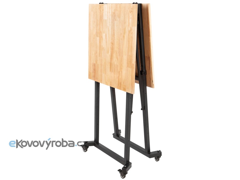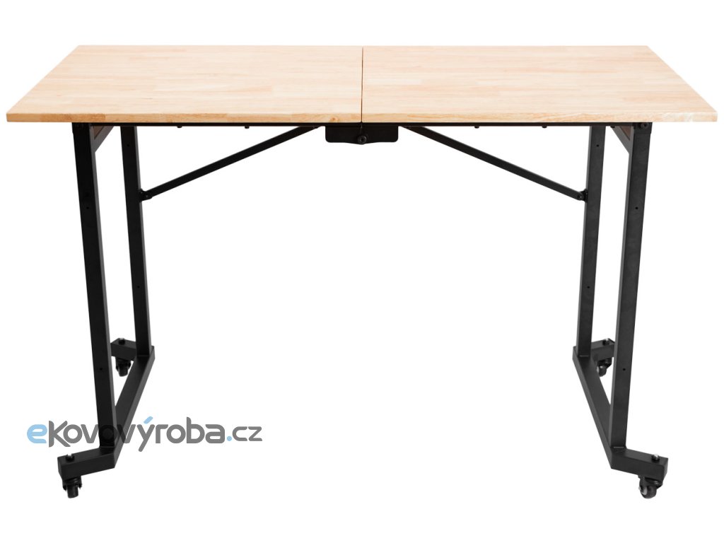 Skládací dílenský stůl určený pro práci v dílnách, garážích a provozech, kde je potřeba flexibilní pracovní plocha s možností rychlého složení a snadného přesunu.