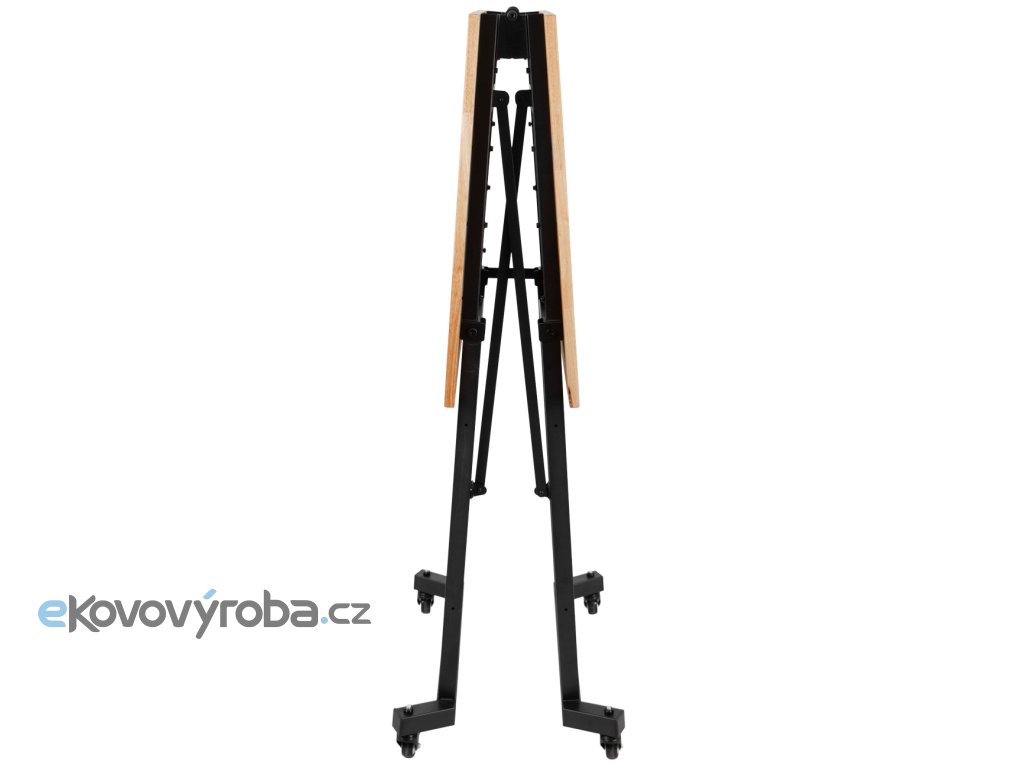 Stůl je tvořen stabilním kovovým rámem s výztuhami a pracovní deskou z kaučukového dřeva o tloušťce 20 mm.