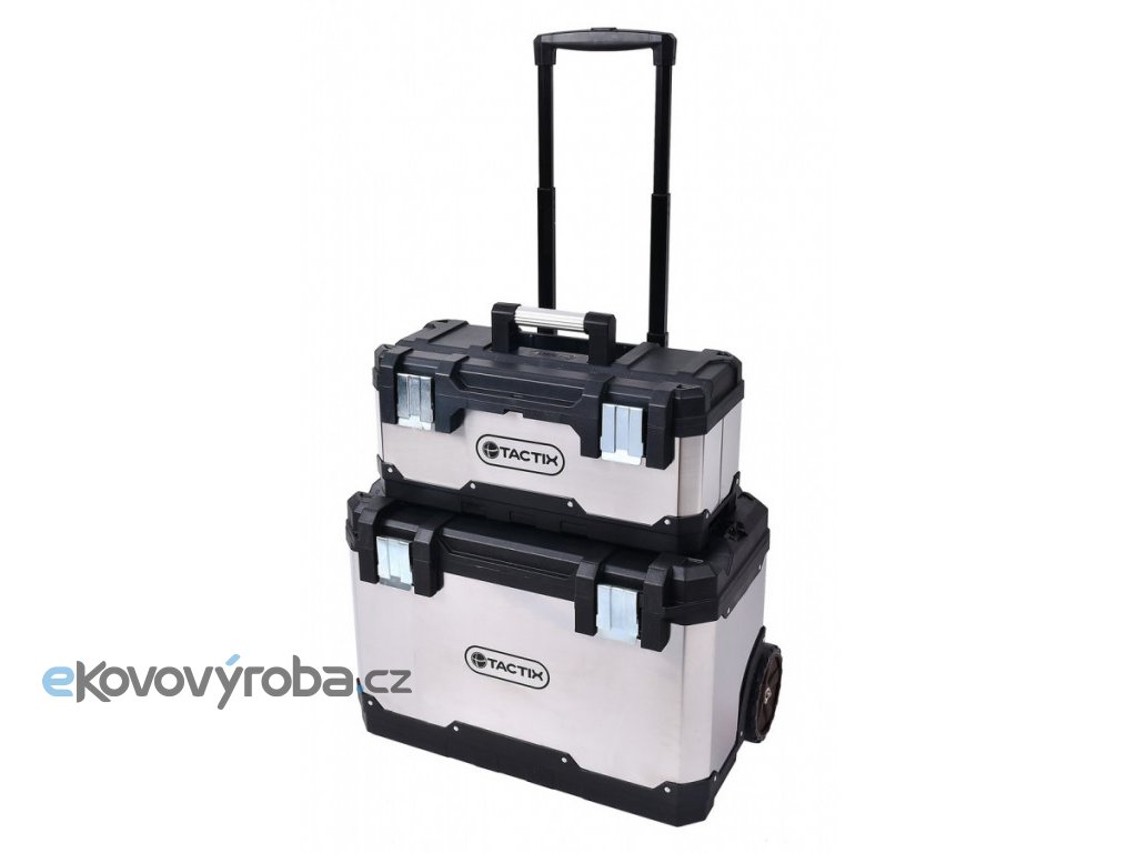 Jedná se o praktické boxy na kolečkách - kufry, kdy jsou 2 nad sebou a tvoří tak větší prostor pro Vaše nářadí. Robustní kolečka zajišťují zvládnutí i horšího terénu.