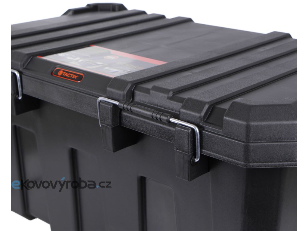 Vodotěsný plastový box s víkem TACTIX 85 L je spolehlivý a odolný úložný prostor pro nářadí a příslušenství.