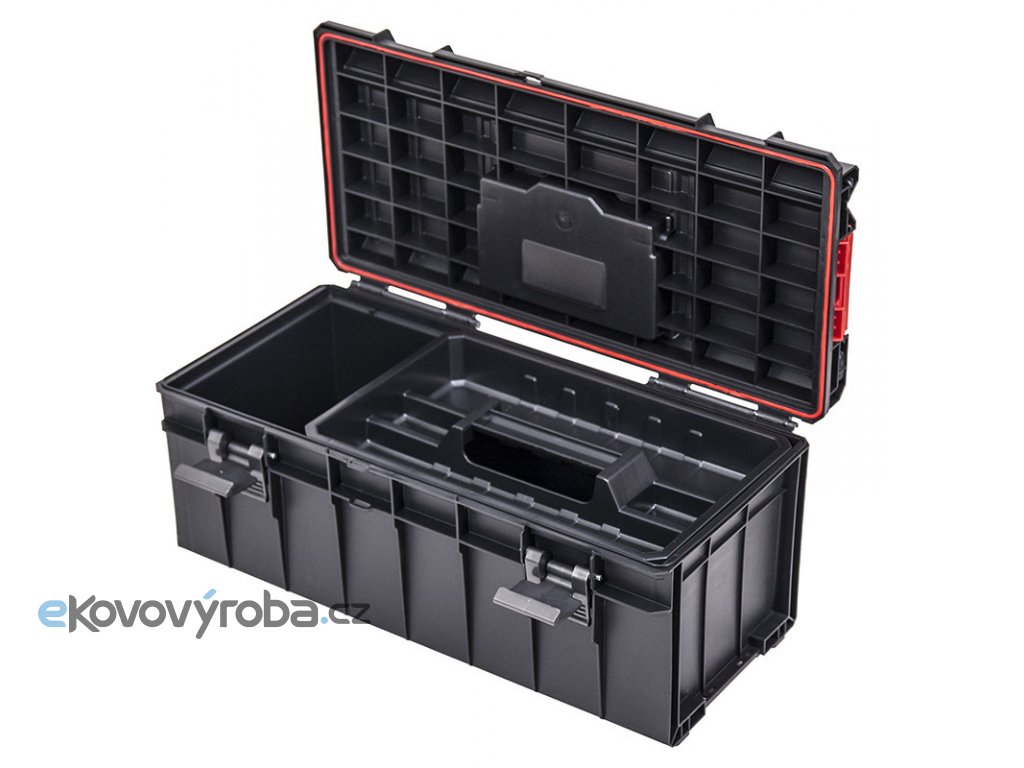 Plastový kufr na nářadí z kolekce SYSTEM PRO s praktickým odnímatelným platem.Řada SYSTEM PRO umožňuje skládání boxů dohromady pomocí spojovacích konektorů.- těsnění na víku, které zajistí ochranu proti vodě a prachu- modulární konstrukce, díky které můžete výrobek propojit s dalšími produkty QBRICK- přední uzavírací klipy- boční spojovací konektory- hluboké odjímatelné plato