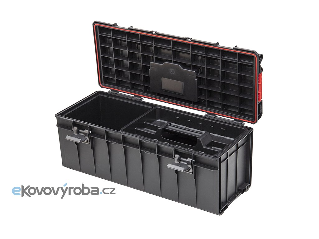 Velký plastový kufr na nářadí z kolekce SYSTEM PRO s praktickým odnímatelným platem.Řada SYSTEM PRO umožňuje skládání boxů dohromady pomocí spojovacích konektorů.- těsnění na víku, které zajistí ochranu proti vodě a prachu- modulární konstrukce, díky které můžete výrobek propojit s dalšími produkty QBRICK- přední uzavírací klipy- boční spojovací konektory- hluboké odjímatelné plato