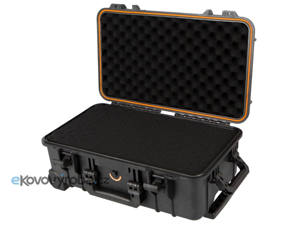 Kufr je vybavený předřezanou pěnovou výplní, kterou lze uzpůsobit do požadovaného tvaru podle vybavení, které potřebujete uschovat.