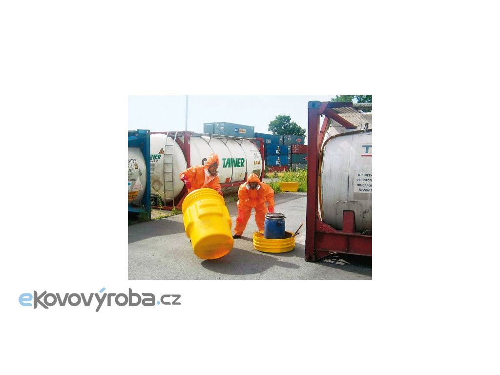 Vyrobeno ze 100% UV stabilního Polyetylenu (PE). Materiál je schopný odolat většině chemických látek a je stabilní i na slunečním záření. Zabezpečení a nepropustné uzavření poškozených nádob při izolování nebezpečných látek. Robustní konstrukce a šroubové víko zajišťují maximální mechanickou odolnost. Likvidace – spálením ve speciálních spalovnách.