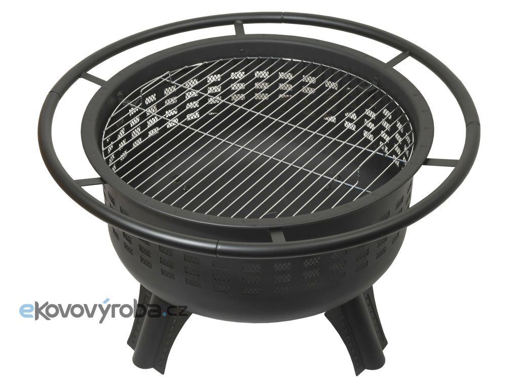 Konstrukce ohniště je vyrobena z kvalitní oceli s vysokoteplotním černým nátěrem. Pro grilování je ohniště opatřeno ocelovým roštem průměru 61 cm.