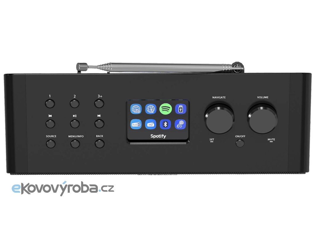 - Frekvenční rozsah ladění DAB+: 174,928–239,200 MHz (III. pásmo)