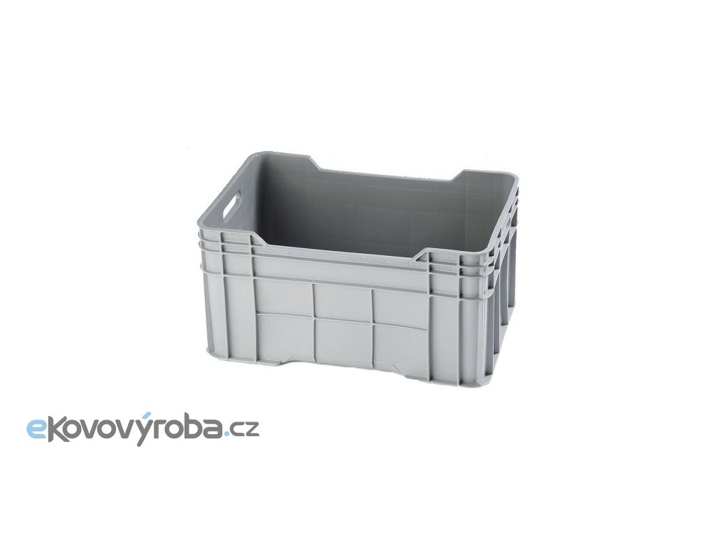Vyrobeno z polyetylenu s vysokou hustotou (HDPE). Plastový box s plnými stěnami. Odolné vůči povětrnostním vlivům a UV záření. Odolné vůči zásadám a kyselinám. Stohovatelné, stabilní a vybaveno držadly pro ruční manipulaci. Hladké vnitřní plochy pro snadné čištění. Materiál je vhodný na styk s potravinami.