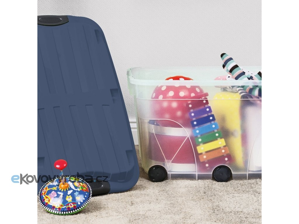 Objemnýplastovýbox o kapacitě 57L. Transparentní box + modré víko. Kolečka pro snadnou manipulaci. Box je opatřen víkem s klipy, které chrání před nechtěným otevřením. Kvalitní materiál a provedení. Boxy lze na sebe stohovat.