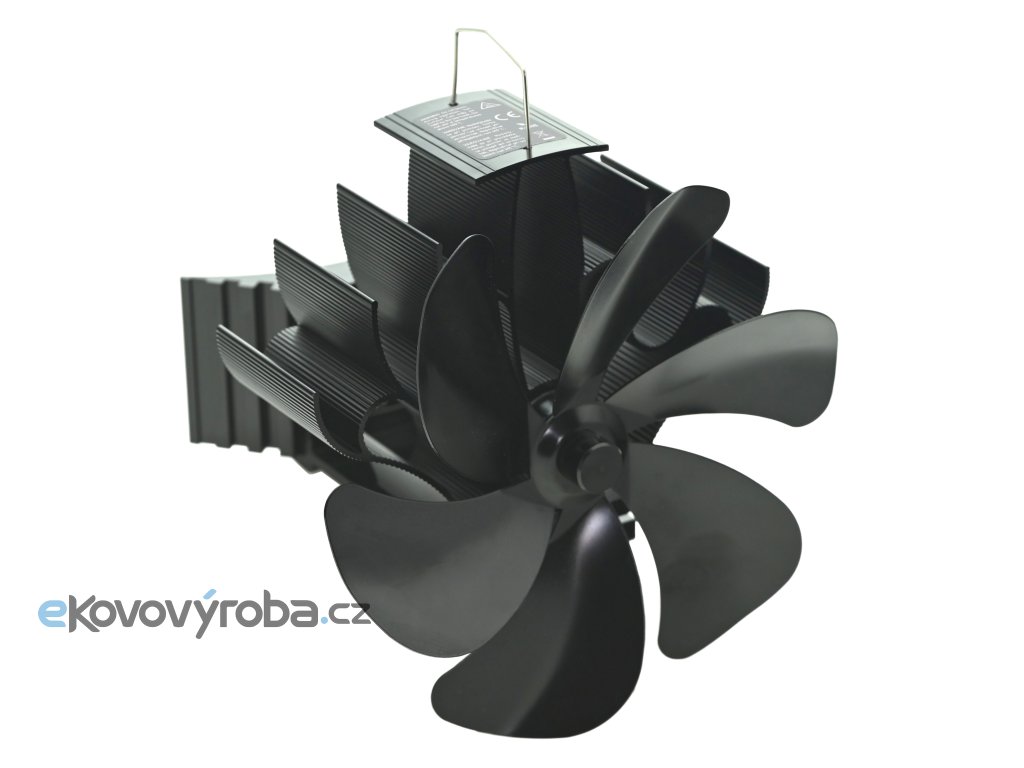 Šestilopatková vrtule se začne plynule rozbíhat přibližně při 80°C a s rostoucí teplotou (optimální rozsah 80–250 °C) se zvýší otáčky i objem proudícího vzduchu. Vrtule o průměru 160 mm dokáže rozhýbat proudění až na úroveň okolo 210 m3/h a svým tichým chodem neruší atmosféru u krbu.