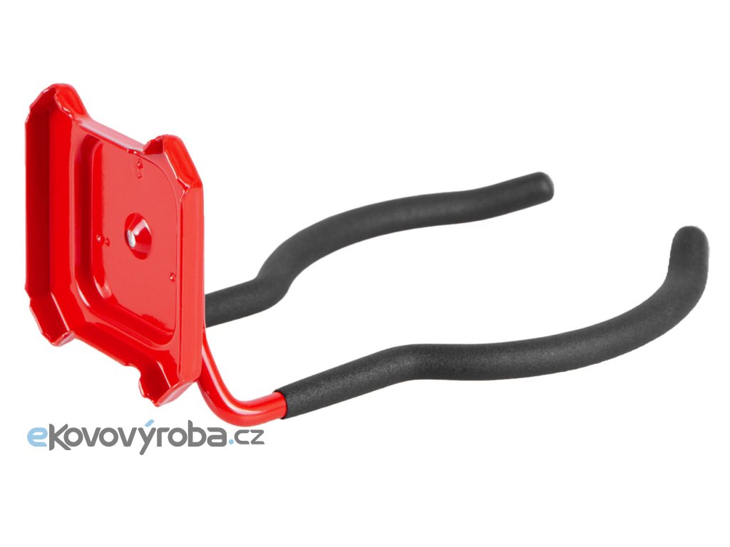 Hák je vyroben z kvalitní oceli, která zajišťuje vysokou pevnost a odolnost vůči opotřebení. Povrch je ošetřen tak, aby odolával korozi a díky protiskluzové úpravě zůstane nářadí pevně na místě.