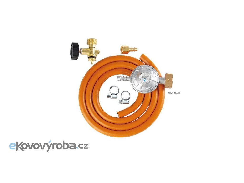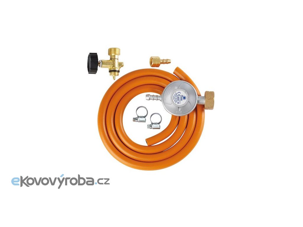 Set: hadice1,5 m UNP01022, 2 hadic. spony UIM905, regulátor tlaku UNP01008, nátrubek UNP01015, jednocestný ventil U2156UV. Pro připojení nízkotlakého spotřebiče s 2kg PB lahví.