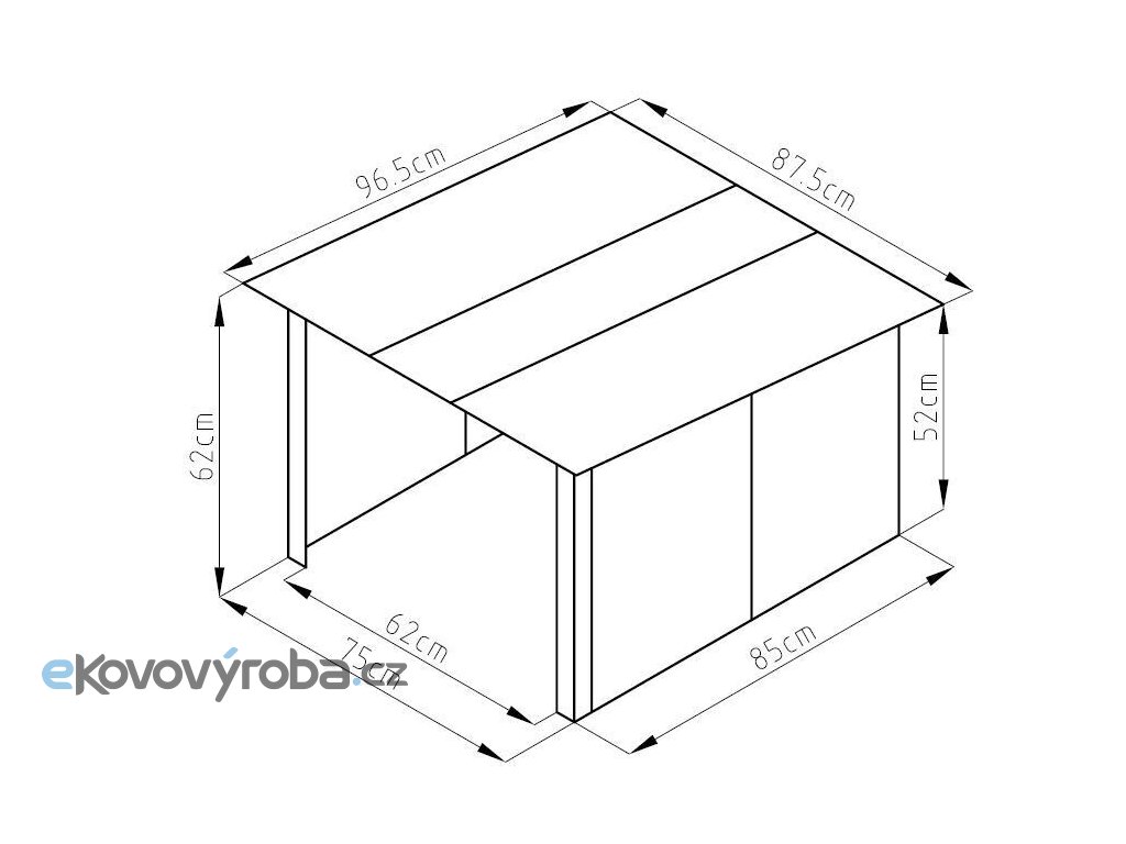 Garáž pro robotickou sekačku. Efektivní úschova. Elegantní řešení pro nenápadné uschování robotické sekačky. Pozinkovaný rám - tloušťka 0,5 mm Pozinkované plechy - tloušťka 0,25 mm sklon střechy 5,5°(pultová stříška) , rozměry předního otvoru 62x58 cm, rozměry zadního dílu 62x49 cm součástí balení je kotevní materiál do betonového povrchu