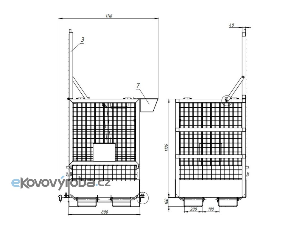- Velikost kapes pro vidlice VZV: 200 x 100 mm