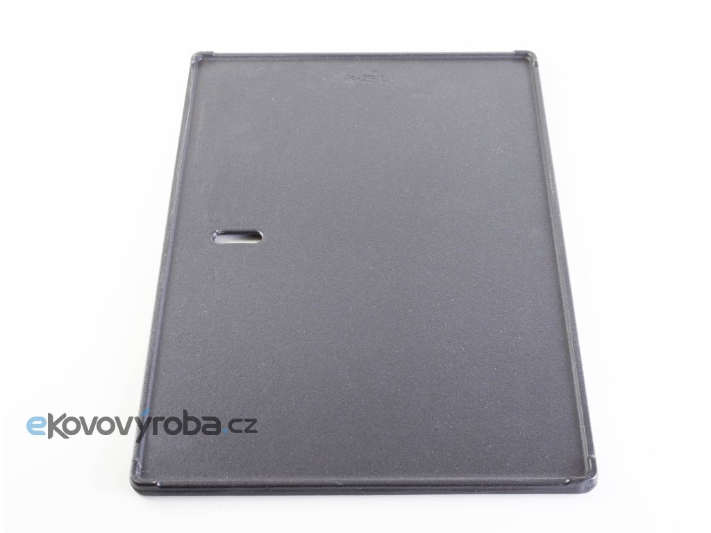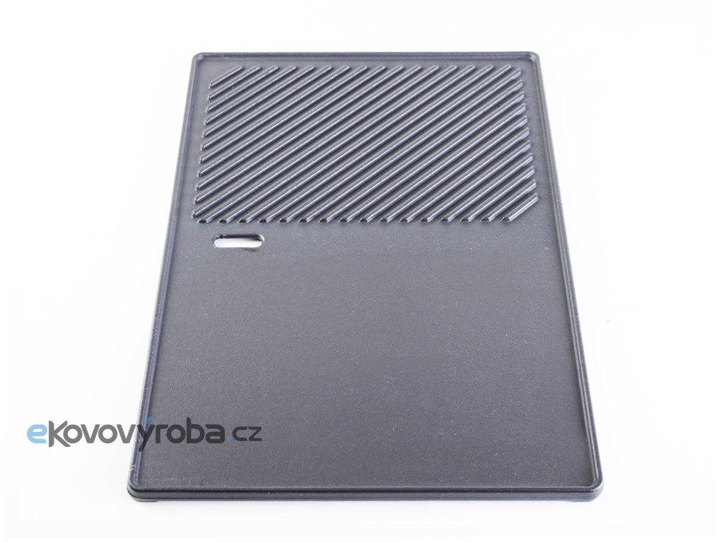 Litina patří mezi nejodolnější materiály, které se pro grilování používají. Je vysoce odolná proti vysokým teplotám a poškrábání. Na každé polovině litinového plátu máte k dispozici jiný druh povrchu. Jedna polovina je hladká a využijete ji především pro grilování nakrájené zeleniny, vajíček a sýrů. Druhá polovina s vroubky je určena pro správné grilování steaků, větších kusů zeleniny a ryb.