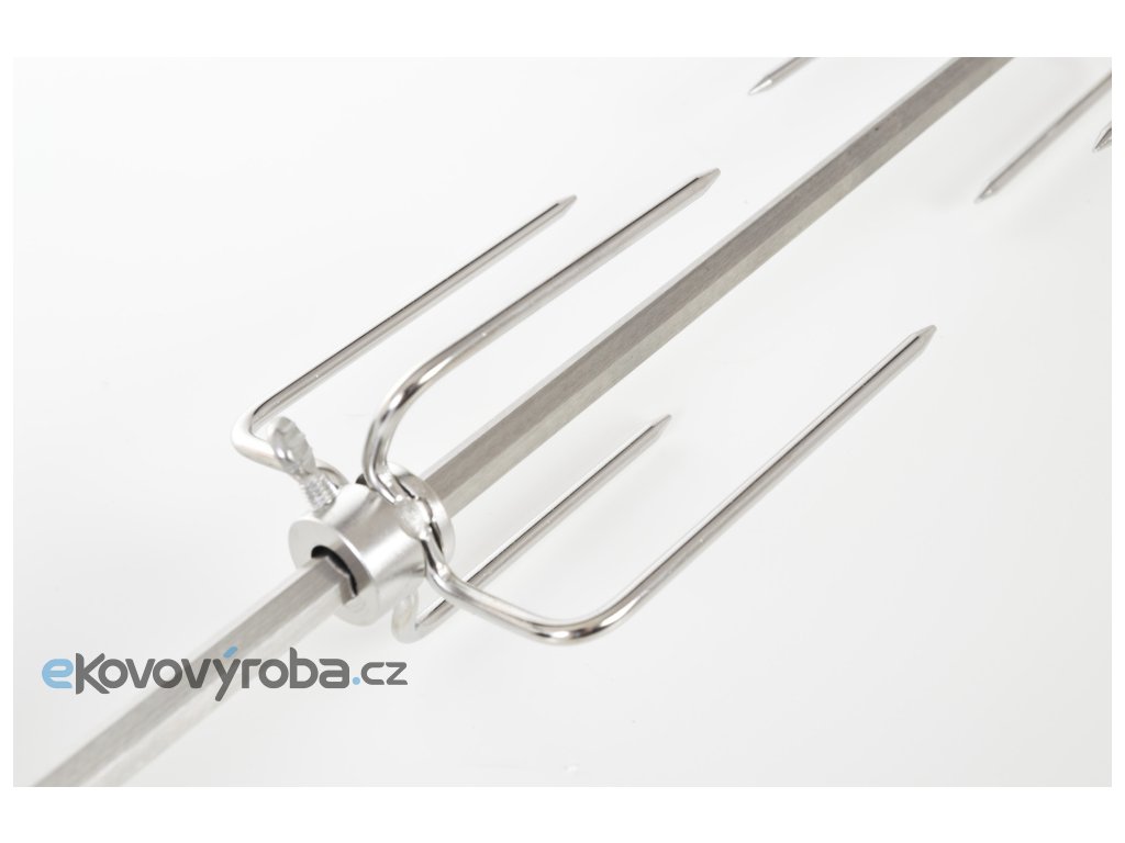 Grilovací jehla s motorem je vyrobena z nerezové oceli a z obou stran je opatřena čtyřmi jehlicemi s aretačními šrouby, díky kterým si můžete jehlice nastavit podle vlastní potřeby.