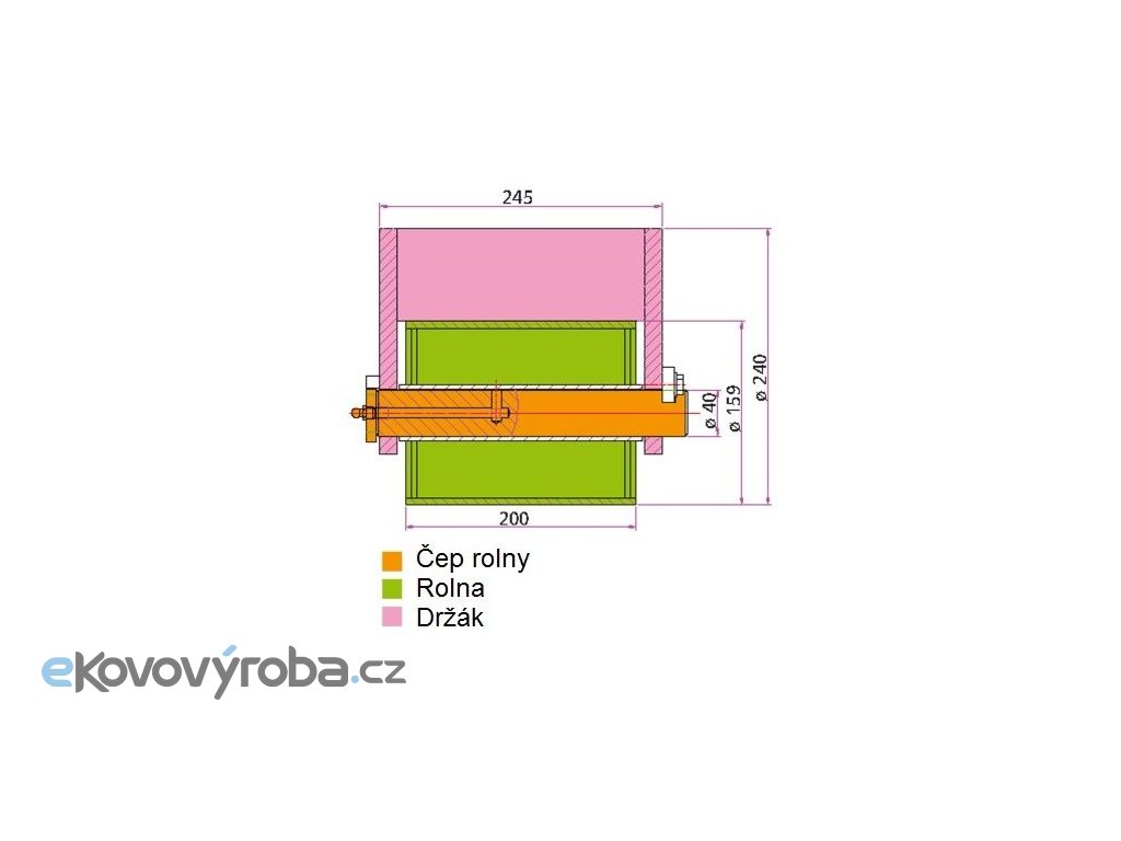 Držák rolny kontejneru ABROLL. Vyrobeno z oceli. Rolna o šířce 200 mm pro velkoobjemové kontejnery ABROLL. Rolny jsou umístěny na zadní straně kontejneru. Rolny umožňují manipulaci s kontejnery a jejich natahování na dopravní prostředek.