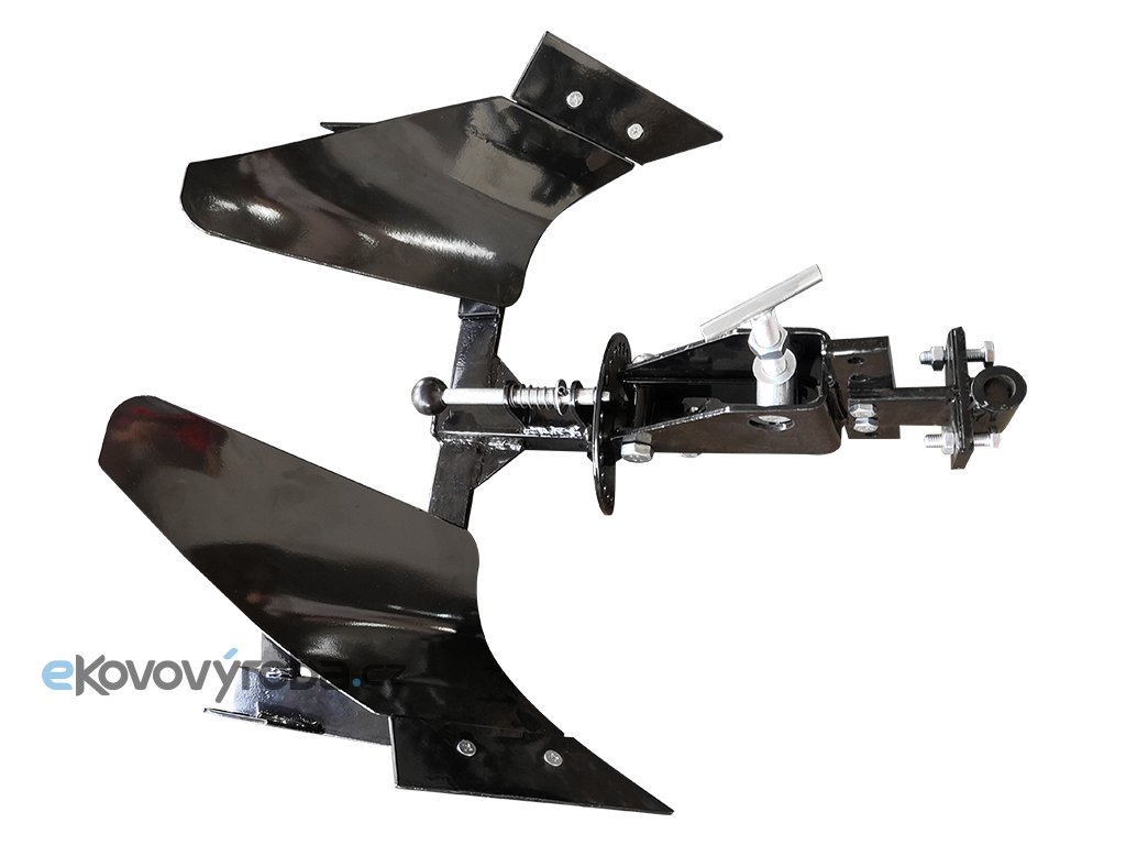 Dvojitý pluh se skládá ze dvou lopatek na obou stranách, což zdvojnásobuje účinnost orání půdy a umožňuje obousměrné čištění půdy.