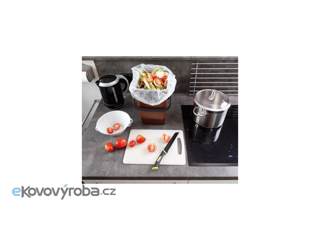 Vyrobeno z 100% recyklovatelného Polypropylenu (PP). Materiál je UV stabilní a odolný vůči účinkům UV záření. Odolný vůči chemickým čisticím prostředkům a biologickému materiálu. Hodí se do prostor, kde není zapotřebí stohování nádob. Může být umístěno do myčky nádobí. Vybaveno odnímatelným víkem s panty a prohlubní na otevření víka. Hladký vnitřní povrch umožňuje snadné čištění. Vybaveno plastovým vertikálním držadlem uchycené dvěma čepy. Vybaveno zámkovým mechanismem (sklopené držadlo uzamyká nádobu).