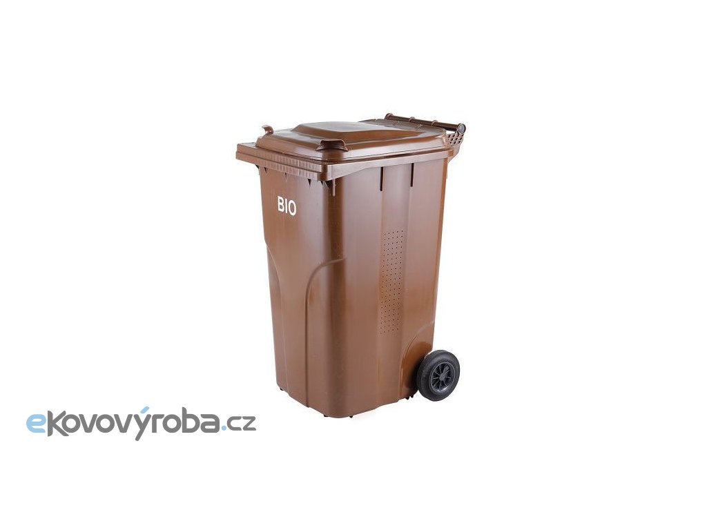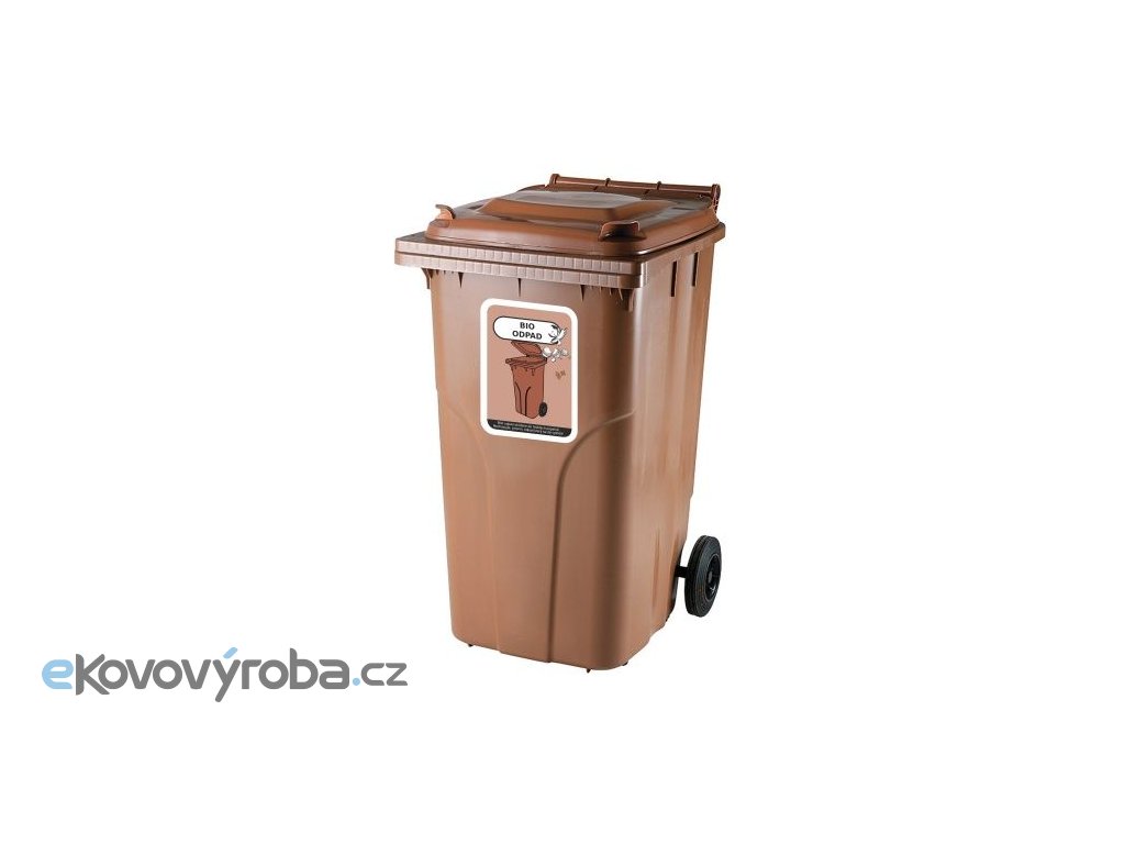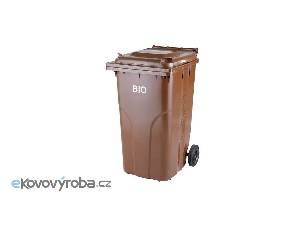 Vyrobeno z plastu – Polyetylen s vysokou hustotou (HDPE). Vybaveno a dvěma gumovými kolečky o průměru 200 mm. Vybaveno plastovým roštem pevně spojeným s nádobou. V souladu s EN 840. Odolné vůči UV záření, chemickým a biologickým vlivům nebo mrazu. Hladké plochy zabraňují ulpívání odpadu. Vybaveno větracími otvory po obou stranách (5x20 otvorů). Výrobní materiál neobsahuje kadmium a může být znovu granulován.