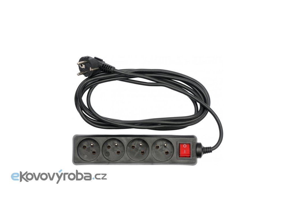Klasický prodlužovací kabel uzemněný. Plastové pouzdro zásuvky s vypínačem. Černá barva.