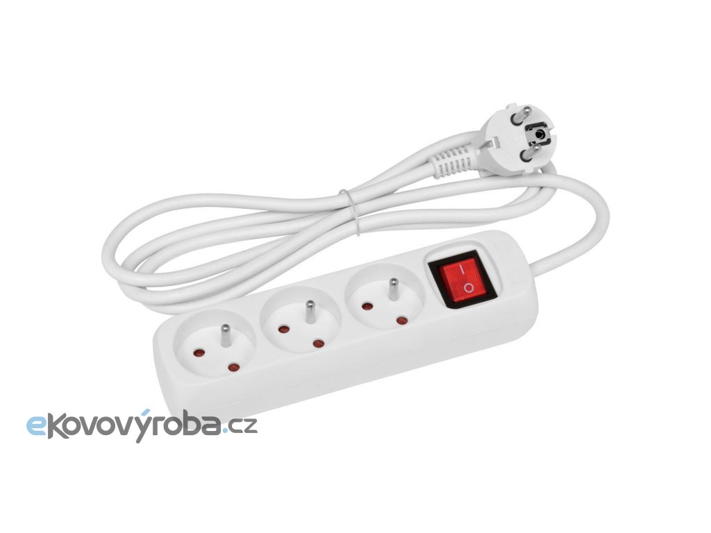 přívod prodlužovací 5m, 3 zásuvky s vypínačem