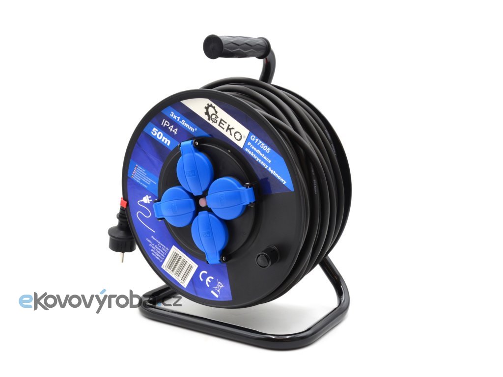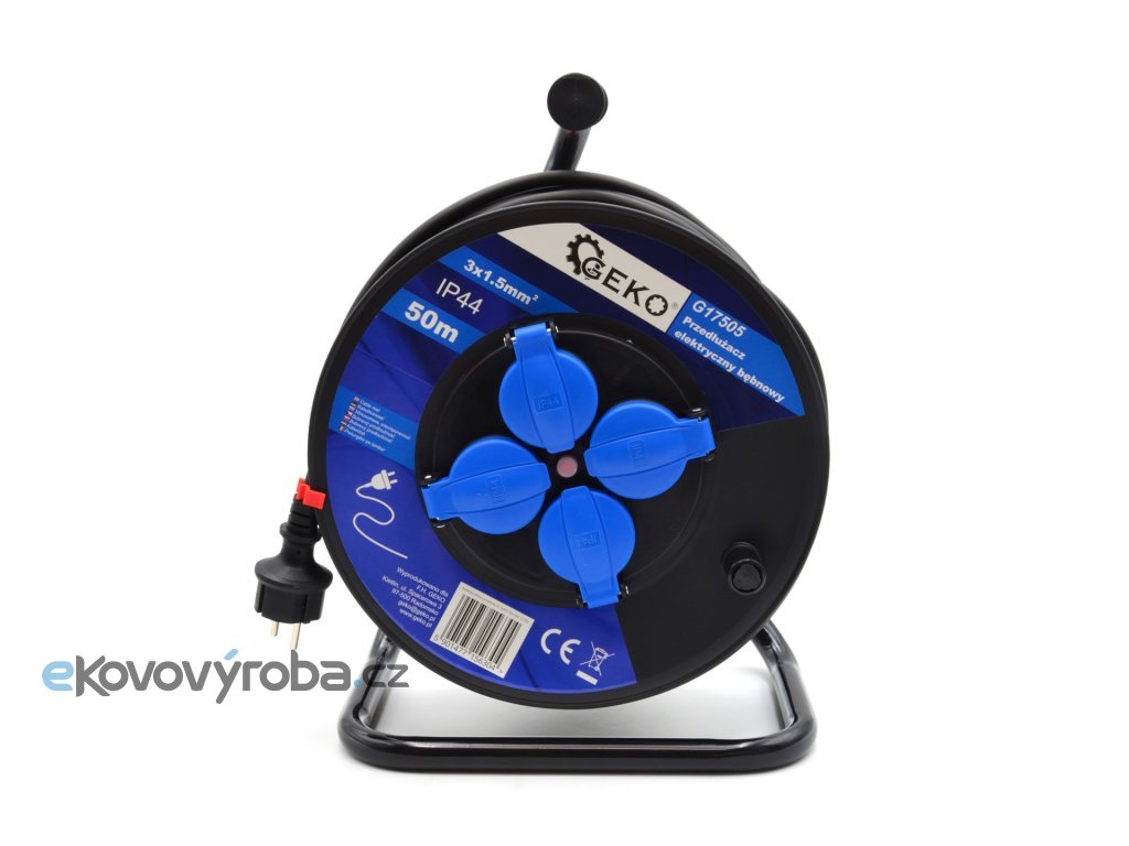 Na bubnu je navinutý elektrický kabel o délce 50 m, který je vyvedený do 4 zásuvek.