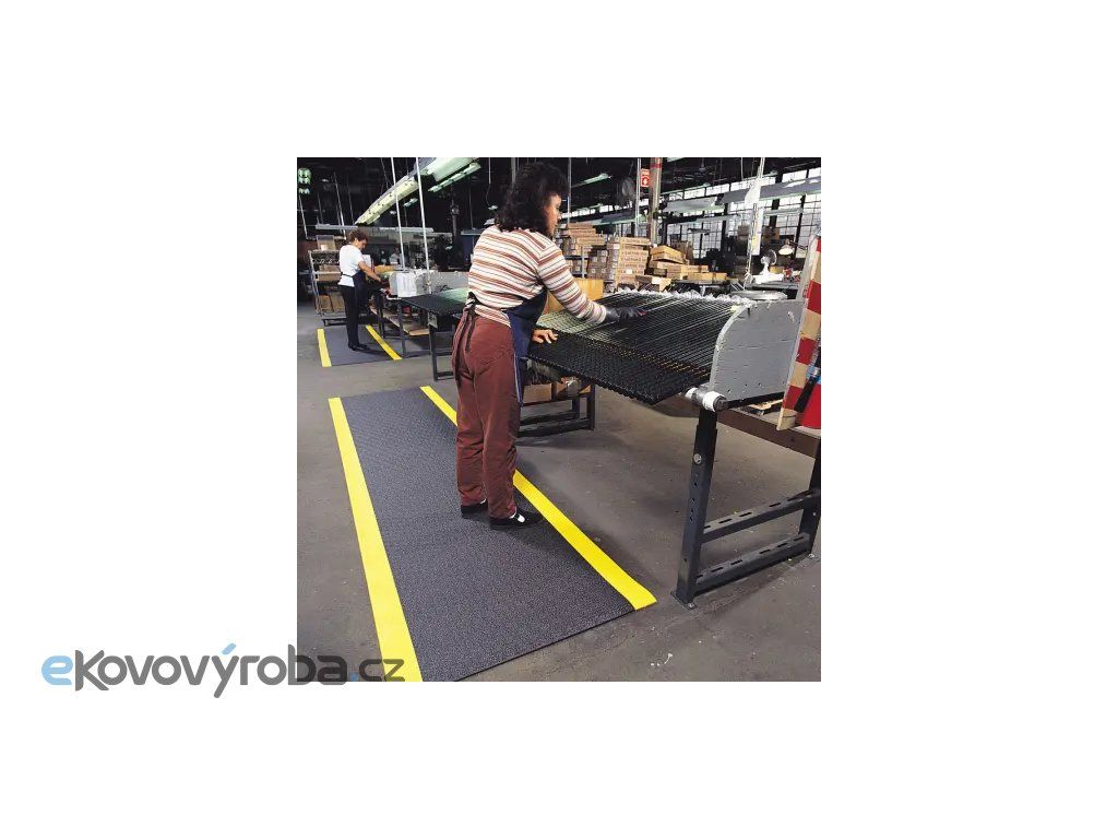 Rohož je na okrajích opatřena žlutými pruhy, díky kterým se výrazně zvyšuje bezpečnost na pracovišti. Splňuje OSHA 1910-144. |
