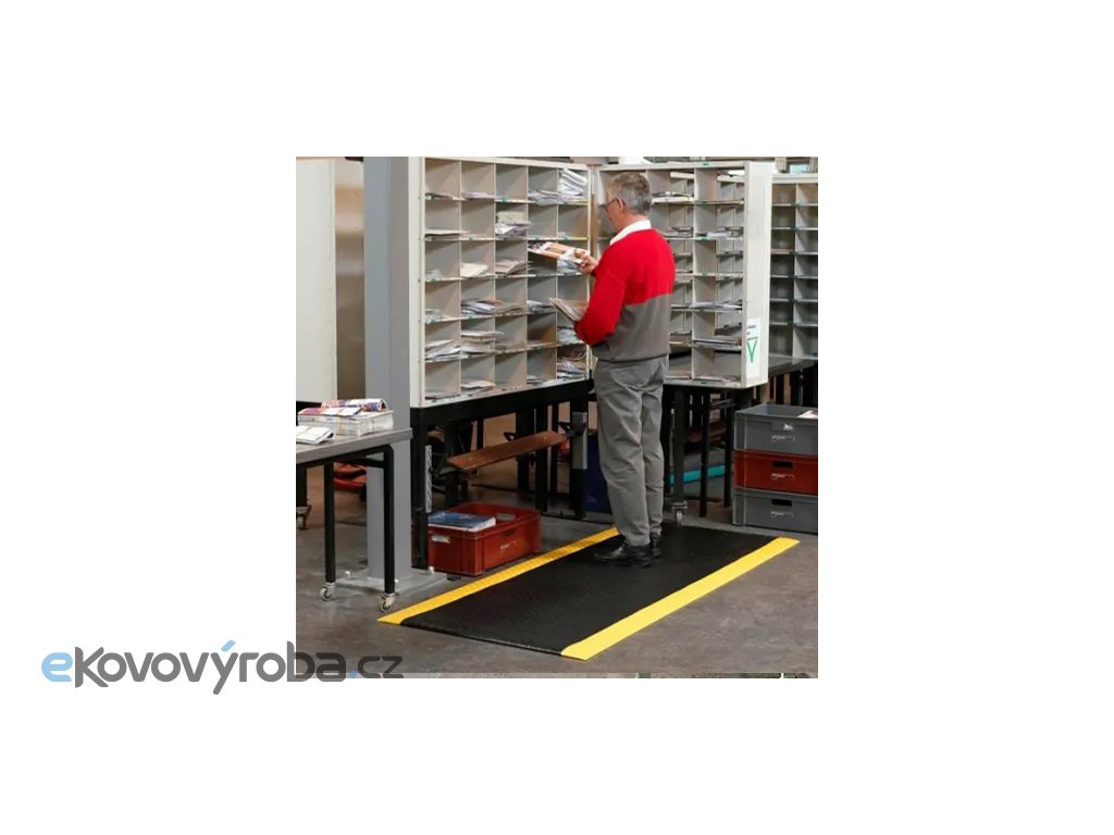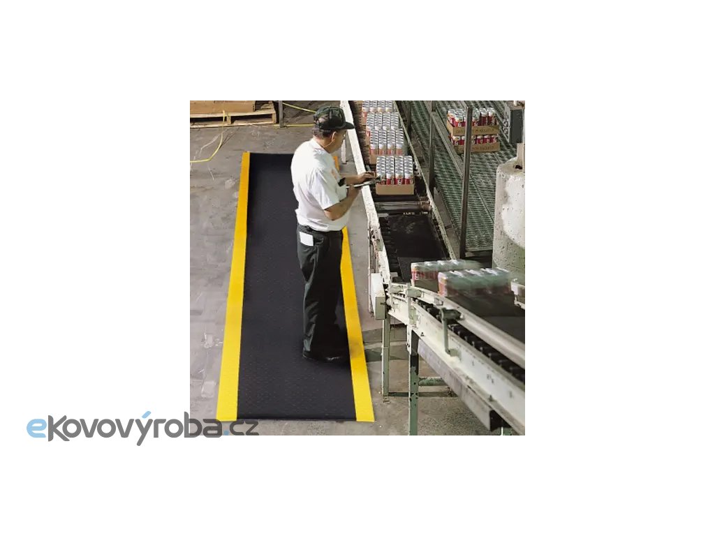 Rohož je na okrajích opatřena žlutými pruhy, díky kterým se výrazně zvyšuje bezpečnost na pracovišti. Splňuje OSHA 1910-144. |