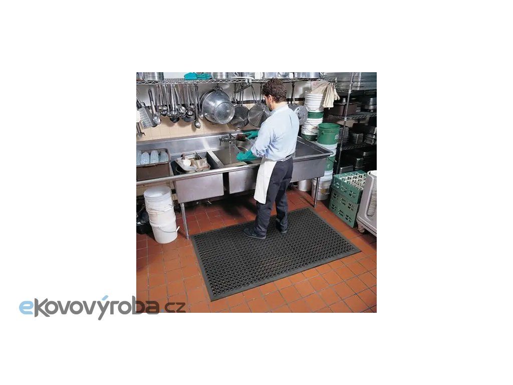 Průmyslové a protiúnavové rohože pomáhají snižovat zatížení pracovníků při dlouhodobém stání a zlepšují jejich pohodlí. Je nezbytné pravidelně kontrolovat jejich stav a zajistit, aby byly správně umístěny na všech rizikových místech. Při jakémkoliv poškození je nutné je okamžitě vyměnit, aby se předešlo úrazům. |