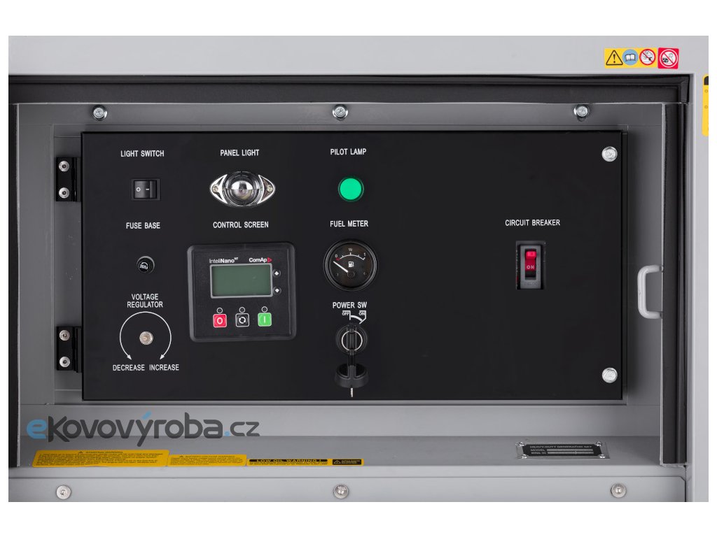Elektrocentrála je vybavená ergonomickým ovládacím panelem. Bude vás informovat o stavu elektrocentrály a umožní vám ji snadno ovládat. Díky němu je obsluha přístroje velmi pohodlná a jednoduchá hned od prvního zapojení.