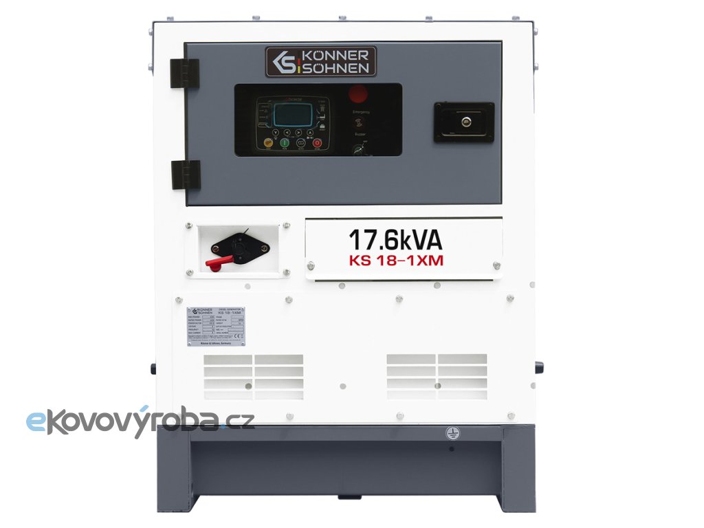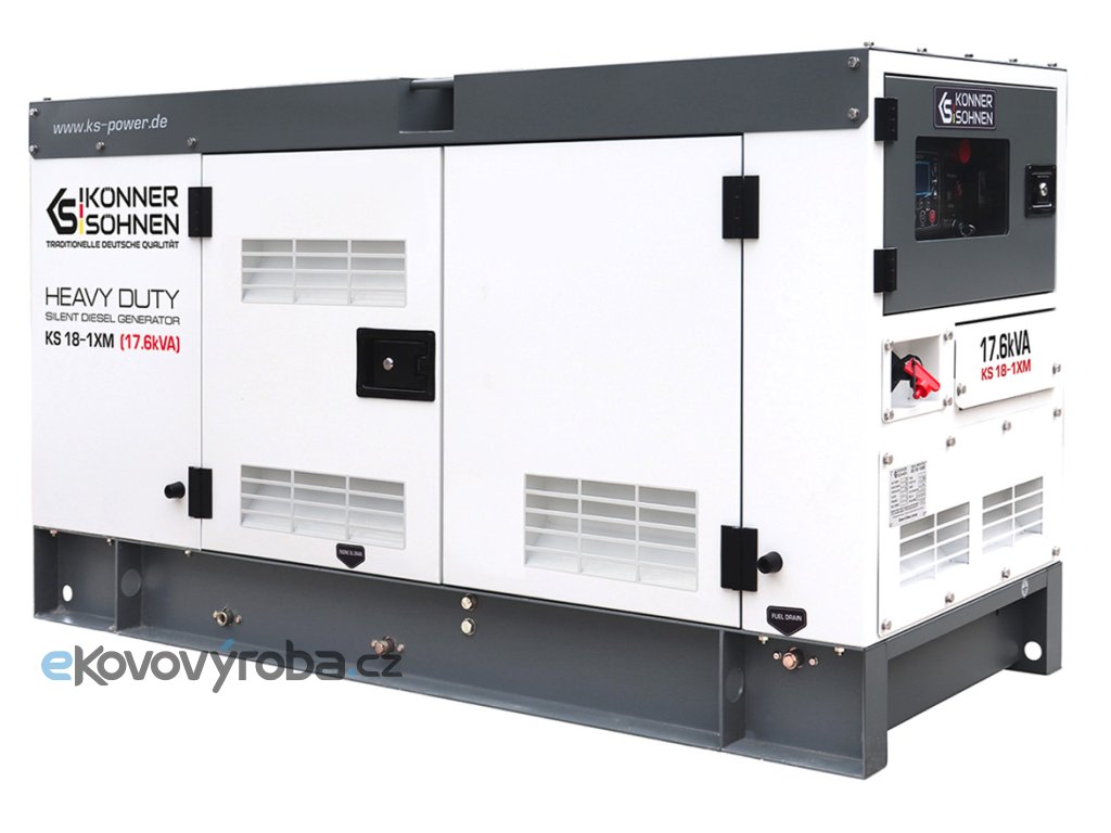 Jednofázová dieselová elektrocentrála KS 18-1XM řady HEAVY DUTY německé značky "Könner & Söhnen" je spolehlivý generátor elektrické energie s maximálním výkonem 17,6 kVA.