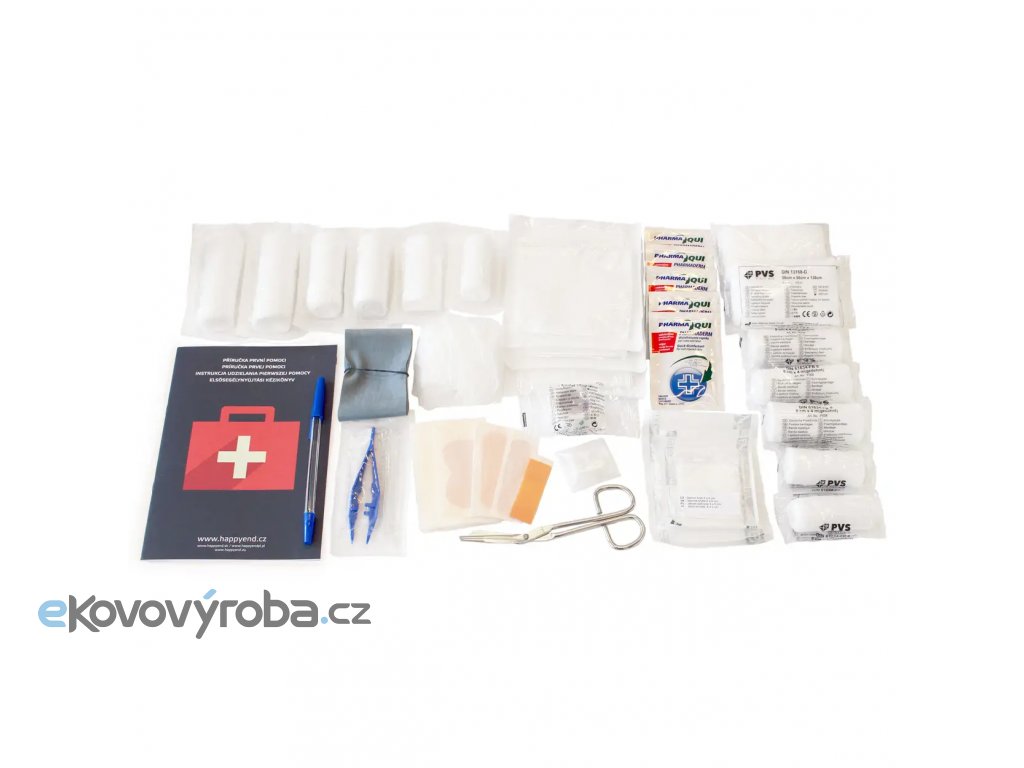 Univerzální obsah lékárničky první pomoci není zákonem přesně stanoven. Obsah se řídí podle potřeb a rizik daného pracoviště nebo vnitřními předpisy konkrétního provozu. |