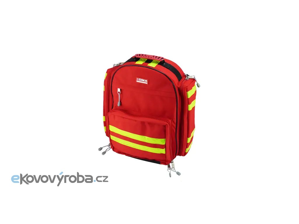 Zdravotnický batoh je vyroben z lehkého voděodolného trvanlivého materiálu. Je vybaven čtyřmi venkovními kapsami s uzavíráním na zip a čtyřmi reflexními pruhy zvyšujícími viditelnost lékárničky za šera, tmy a nepříznivého počasí. Záda jsou vyztužená. Ve vnitřním prostoru je pět uchycených barevných kapes s průhlednými okénky uzavíratelných suchými zipy. Dále je vybaven gumovými úchyty a pásky se suchým zipem pro uložení lékařských nástrojů a přístrojů. |