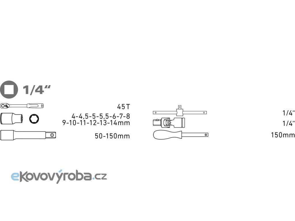 | hlavice nástrčné | 1/4": 4-4.5-5-5.5-6-7-8-9-10-11-12-13-14mm |