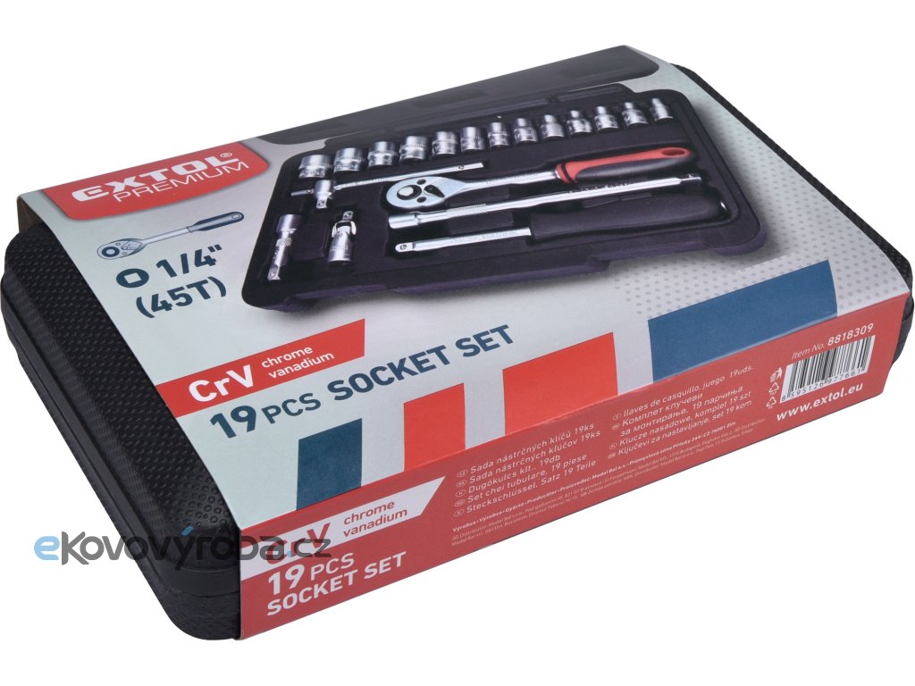hlavice nástrčné, sada 19ks, 1/4", CrV