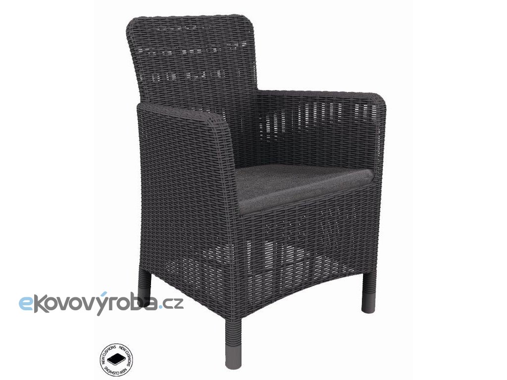 Design umělého pleteného ratanu v grafitové barvě zaujme na první pohled a křeslo díky stylovému a modernímu vzhledu zapadne dokonale do každého interiéru i venkovních prostor.
